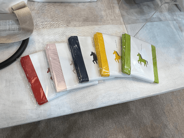 新年のご挨拶のアイテムとして提案したい「午年ふきん」。2026年の干支「午」をあしらった5色展開のかやふきんです。