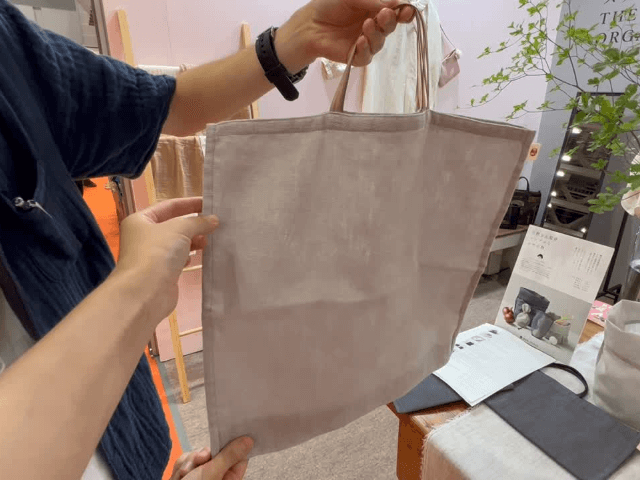 クラフトバイヤー・日野明子さんの監修の「シンプルシリーズ」のアイテムから、蚊帳生地3重仕立ての軽さを活かした手提げバッグが登場。マチも畳める仕様なので、折りたたんで鞄に忍ばせてくことができます。洗っていくと糊が落ちてくたっとした風合いに。旅行の際のサブバッグ、インテリアの収納袋としてシンプルだからこそ、いろんなシーンで使えます。