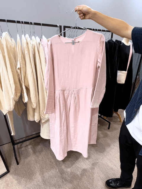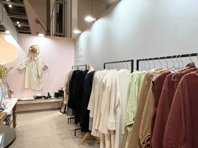 綿や麻などの天然素材を使い、洗練された世界観と美意識を感じる「BAN INOUE (井上企画・幡)」。今回の展示会では、ピンクのカラーがブースを彩っていました。サスティナブルなmarrowシリーズからコーディネートのポイントになるようなニットバッグはフォルムもかわいらしく、保温性が高いスラブ糸の蚊帳織り記事の服もシルエットに上品な程よいかわいらしさも感じます。綿という天然繊維がもたらす優しい雰囲気、安心感を感じる心地よさを伝統の蚊帳織りがさらに魅力的に感じさせてくれるアイテムばかりです。ぜひ新作アイテムもチェックしてみてください。