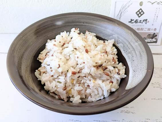 今回はお茶碗でいただきましたが、ランチ用のおにぎりにしてもOK。栄養に気を配っている方にもおすすめです。 ぜひ、七右ヱ門の「雑穀ご飯の素」シリーズをお試しください!